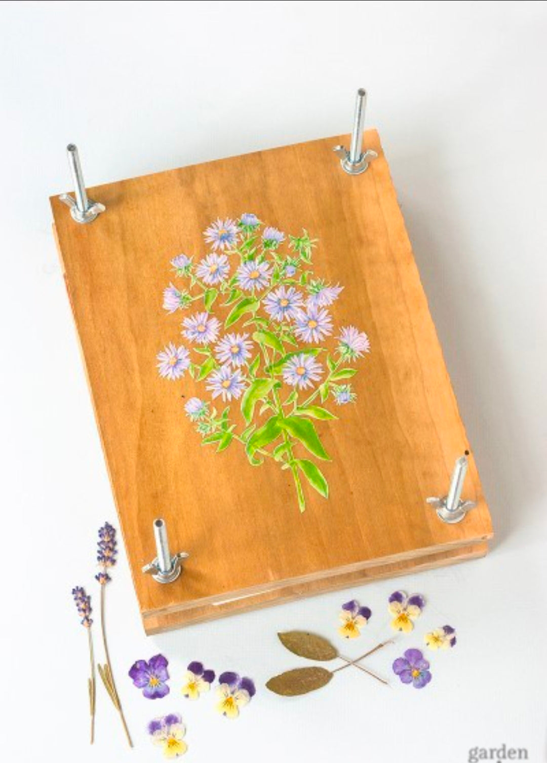 Assemble your own wooden flower press (all parts provided), you will also get to decorate it with paints, stamps, and your personal touch.